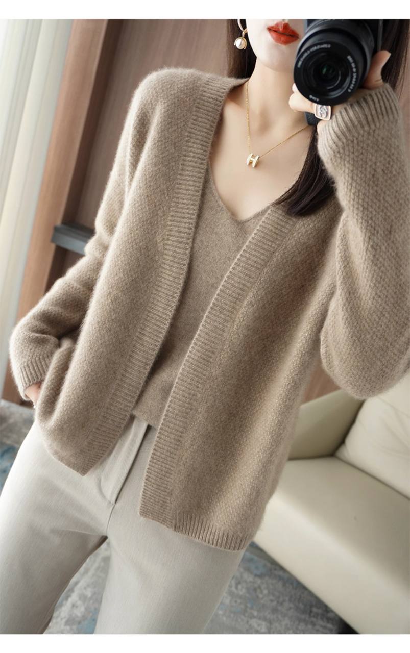 Soft Cardigan Knitted Cashmere Suspender Sweater Two-Piece Set