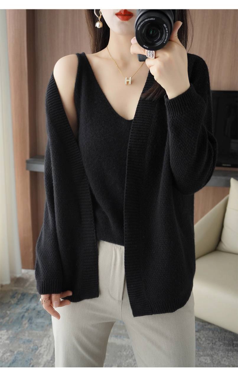 Soft Cardigan Knitted Cashmere Suspender Sweater Two-Piece Set